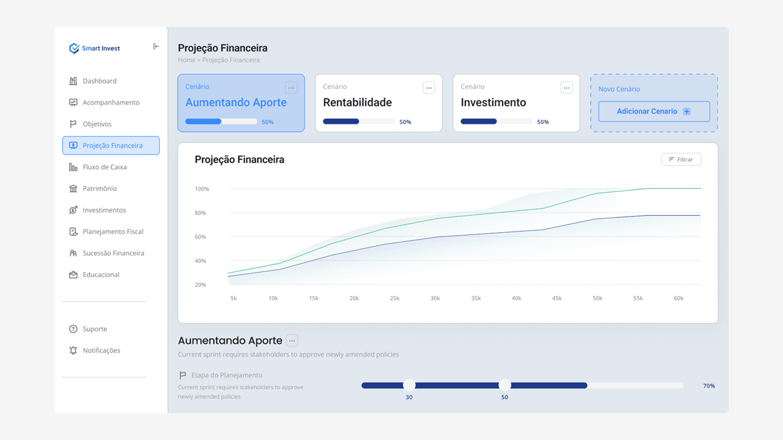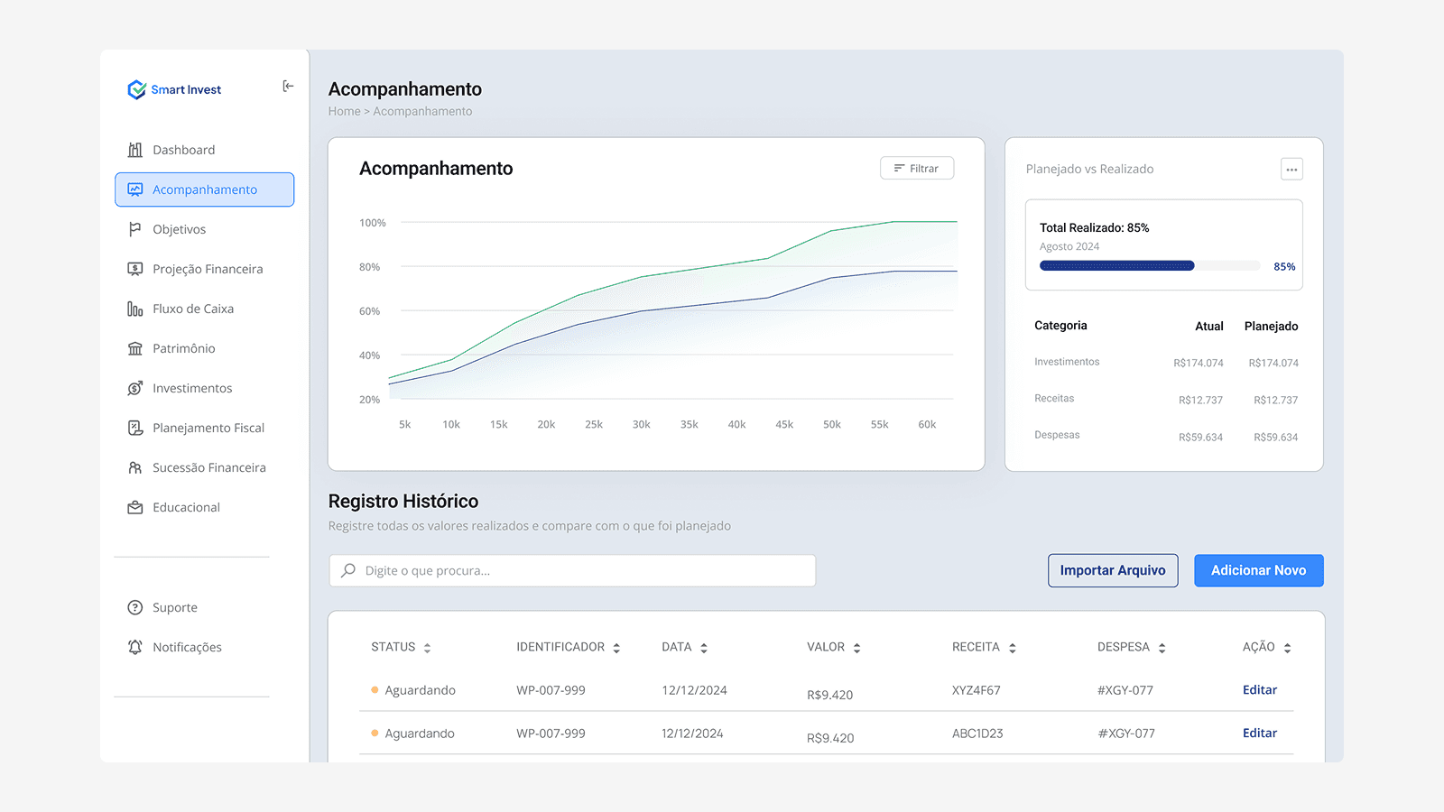 O protótipo SmartInvest validou não só a viabilidade do produto, como também sua atratividade para o mercado. Com base nos testes, o projeto gerou projeções financeiras na casa das centenas de milhões — abrindo portas para captação e expansão acelerada. Mais do que uma interface bonita, criamos um ativo estratégico para a marca.
